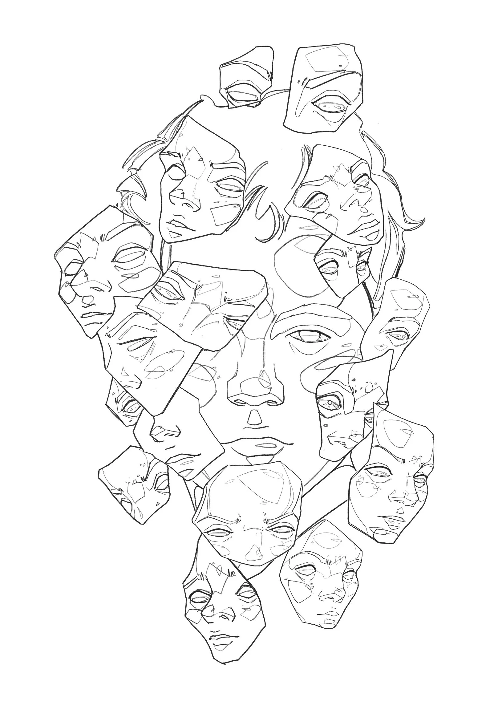Soy un reflejo de todas mis versiones. Cada rostro que me cubre es una parte de mí, un fragmento de lo que fui, de lo que soy y de lo que seré. No hay contradicción, solo totalidad.